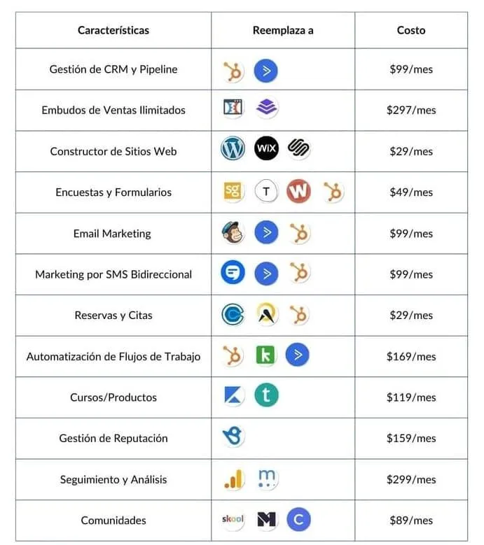 Ahorra más con herramientas integradas en una solución todo-en-uno. Desde embudos de ventas hasta calendarios, cursos y comunidades, optimiza cada aspecto de tu negocio en una sola plataforma, sin suscripciones adicionales.